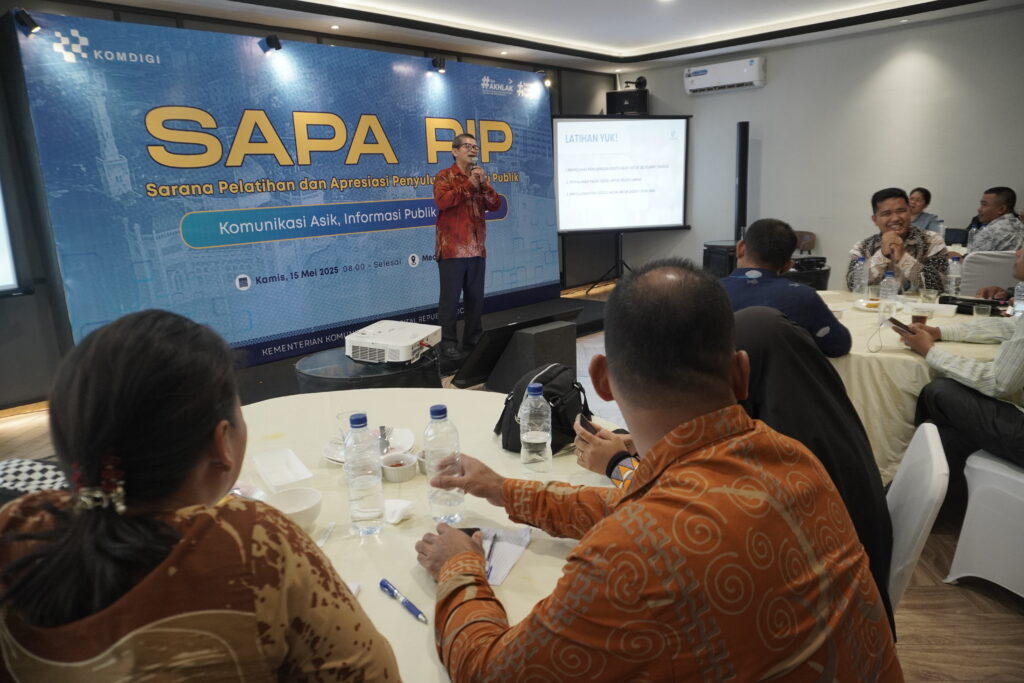 Direktorat Kemitraan Komunikasi Lembaga dan Kehumasan akan menggelar Bimbingan Teknis Penyuluh Informasi Publik SAPA PIP pada 14–16 Mei 2025 di Medan untuk meningkatkan kapasitas PIP dalam menyampaikan informasi kebijakan pemerintah secara tepat dan akurat. Kegiatan ini bertujuan menjawab tantangan kesenjangan pemahaman informasi di daerah tertinggal dan perbatasan, dengan pendekatan tatap muka yang menyentuh logika dan emosi masyarakat. Pemahaman yang baik terhadap program pemerintah diharapkan membuat penyuluh mampu memverifikasi dan menjelaskan informasi secara jelas dan mudah dipahami.