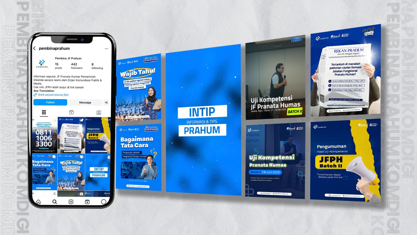 Kami mendukung pranata humas di lingkungan Kemkomdigi dalam membangun jejaring komunikasi melalui pengelolaan akun media sosial yang profesional. Dengan mengangkat peran humas pemerintah secara dinamis, kami hadirkan konten yang menggugah, informatif, dan mampu menjadi referensi dalam penguatan kehumasan digital lintas instansi.